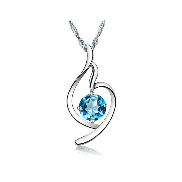 "Mom" Sydänkaulakoru Sinisellä Kivellä - 925 Hopea Kaulakoru Äidille