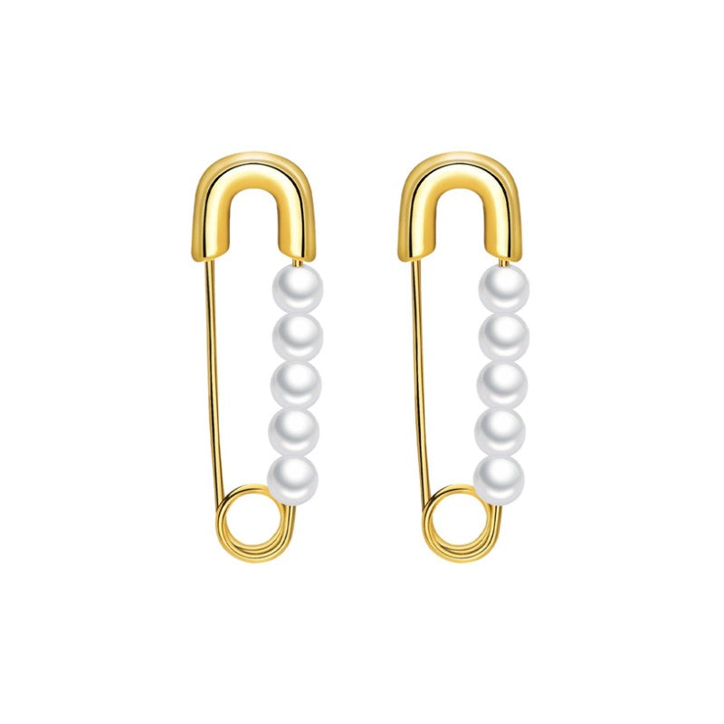 Kullanväriset Turvaneula Teräskorvakorut Helmillä