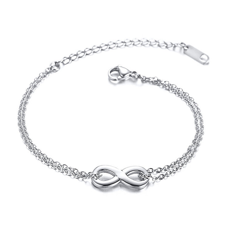 Tämä hienostunut rannekoru symboloi ikuista yhteyttä ja rakkautta. Koristeena on kiiltävä äärettömyysmerkki, joka yhdistyy siroihin kaksoisketjuihin. Koru on kevyt mutta kestävä, ja sen säätöketju mahdollistaa täydellisen istuvuuden eri ranteisiin. Kirurginteräksestä valmistettu rannekoru on erinomainen valinta herkälle iholle, sillä se ei sisällä raskasmetalleja ja on täysin hypoallergeeninen.